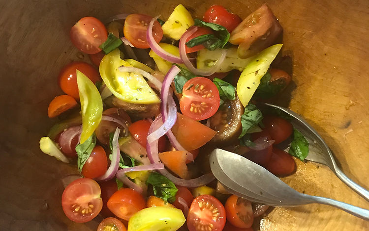 Prepare this easy Sicilian salad an hour or two ahead of time and let it sit at room temperature for the best juice and flavors to develop. It was a staple on our table every week during the summer months. Serve it with any protein and make sure you have a good piece of hard, crusty bread* to mop up all the juices.